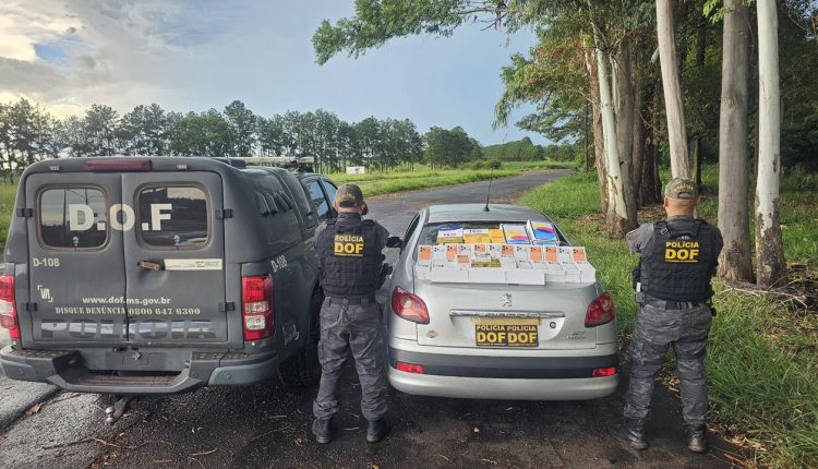 O DOF (Departamento de Operações de Fronteira) apreendeu na manhã desta quarta-feira (7/1), na MS-164, próximo ao Trevo do Copo Sujo, em Ponta Porã, carga de celulares e medicamentos para emagrecer avaliados em mais de R$ 650 mil. Na ação, mulher de 41 anos, e homem de 50, foram presos em flagrante.