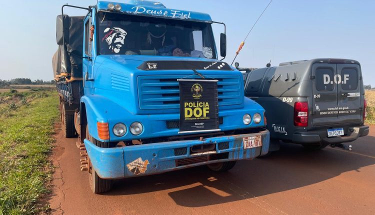 O DOF (Departamento de Operações de Fronteira) apreendeu no domingo (18), na MS-165, zona rural Aral Moreira, um caminhão Mercedes/Bens, com placas paraguaias, por adulteração de sinal identificador de veículo automotor. Um homem de 32 anos foi preso.