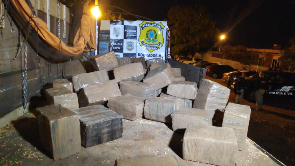 A carga de maconha apreendida ontem pela Polícia Rodoviária Federal em Dourados pesou ao todo 2 toneladas e 910 quilos da droga. O carregamento foi localizado escondido em uma carreta que foi interceptada na BR 163 e também em um local de armazenamento em uma chácara na periferia de Dourados.