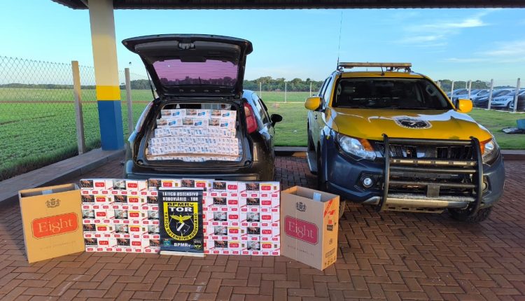 Na vistoria, os militares localizaram vários maços de cigarros de origem estrangeira, configurando contrabando. No veículo estavam dois ocupantes, que informaram ter buscado a mercadoria em Ponta Porã, na fronteira com o Paraguai, e levariam até Campo Grande.