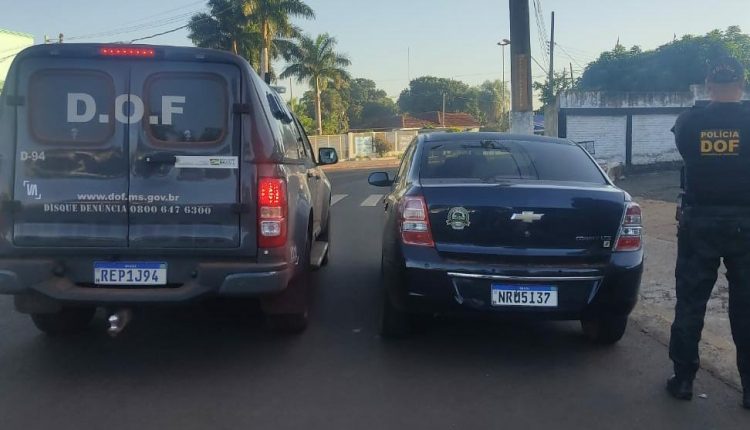 Policiais do DOF (Departamento de Operações de Fronteira) prenderam na madrugada de hoje (26) dois homens que não tiveram os nomes divulgados, de 23 e 27 anos levando um Cobalt, com queixa de furto para a cidade paraguaia de Bela Vista do Norte.