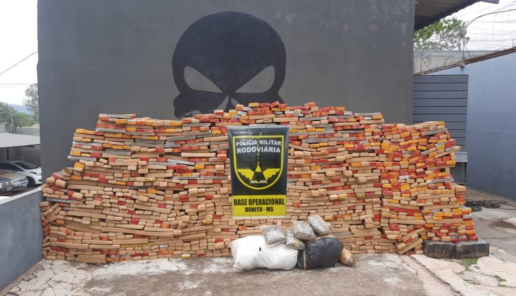 No interior da caminhonete, conforme o registro policial, foram localizados 1.383,3 quilos de maconha, 16,2 quilos de skank, e 2,4 quilos de sementes de maconha.
