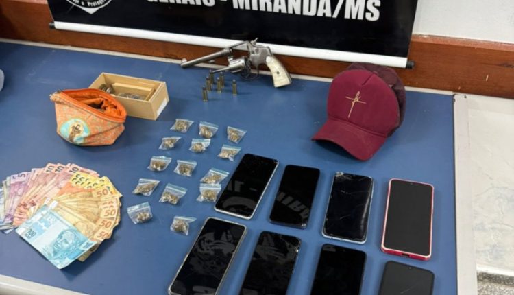 A polícia também pediu mandado de busca e apreensão na residência dos envolvidos. Na manhã de ontem, equipes da Polícia Civil e da Militar deslocaram até a residência localizada na Rua Candido Ramires, onde I.G.P. foi encontrado e preso. Durante cumprimento da busca, as equipes encontraram um revólver calibre 38, além de 14 porções de maconha embaladas para comercialização. Além do cumprimento do mandado de prisão, I.G.P. foi preso em flagrante por tráfico de drogas e posse de arma de fogo de uso permitido.