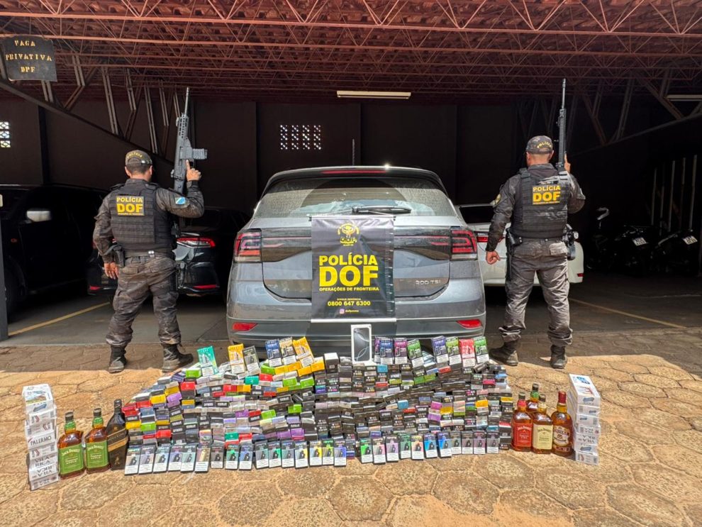 No veículo foram encontrados cigarros eletrônicos, bebidas alcoólicas, aparelhos de telefone celular e cigarros. Os materiais foram entregues na Receita Federal de Mundo Novo e o autor encaminhado à Delegacia da Polícia Federal em Naviraí.