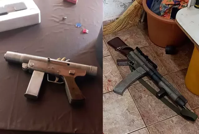 Na casa, foram encontradas duas armas artesanais. De acordo com a delegada Joilce Ramos, o ‘Menor SP’ estaria fabricando várias armas, já que na casa foram encontradas peças para a fabricação.