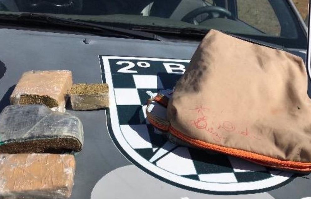 Uma equipe foi deslocada para a área onde avistou o suspeito sentado em meio ao matagal. Quando avistou os policiais, o homem fugiu, largando uma mochila de couro com a maconha.