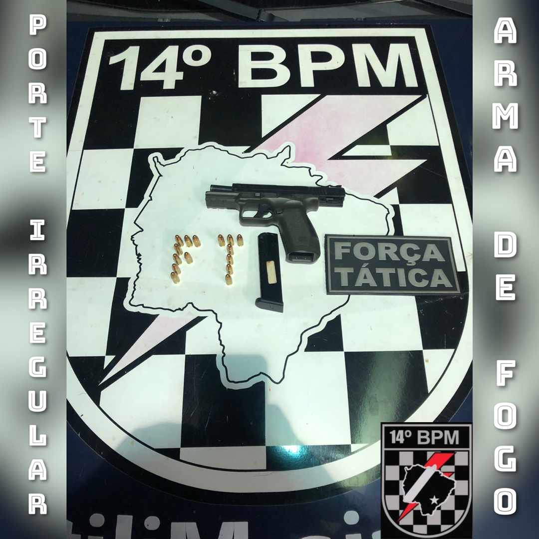 Em operação realizada na cidade de Ponta Porã, a equipe da Força Tática recebeu informações envolvendo uma possível negociação de arma de fogo. Diante das informações os agentes passaram a monitorar o local, logrando êxito em parar um veículo com três ocupantes, e em seguida abordar Ananias da Silva Brum, o qual estava portando em sua cintura uma pistola da marca CANIK, modelo TP9, com um carregador municiado com 15 munições intactas.
