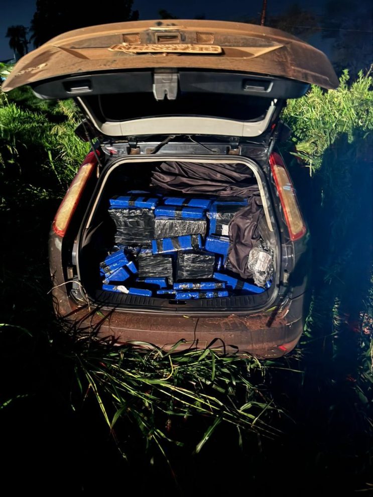 Policiais da Defron (Delegacia Especializada de Repressão aos Crimes de Fronteira) apreenderam um Ford Focus com 700 quilos de maconha. O veículo levantou suspeita após fazer a rotatória em alta velocidade e com os faróis apagados.