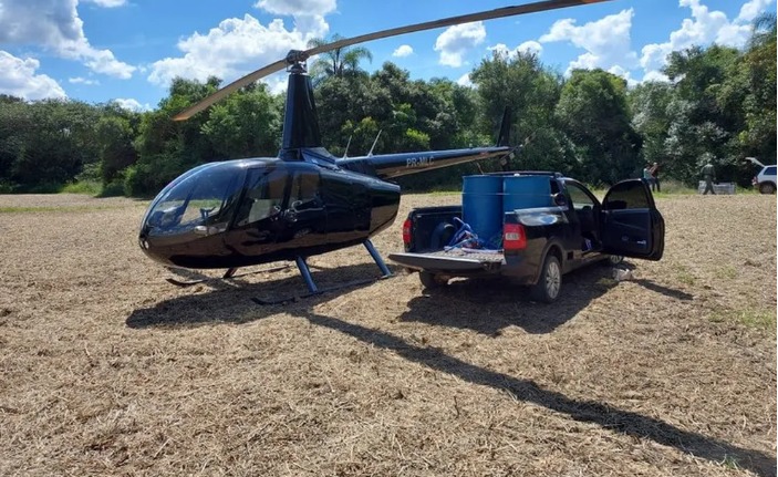 A PF (Polícia Federal) apreendeu no último sábado (18), no município paulista de Buri, um helicóptero que partiu do Paraguai e transportava 300 quilos de cocaína.