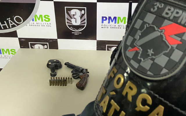 Diante disso, a polícia foi acionada e com o autor encontrou um coldre de couro, com dez munições de revólver calibre 357 (marcas diversas) e ainda um revólver do mesmo, Magnum, municiado.