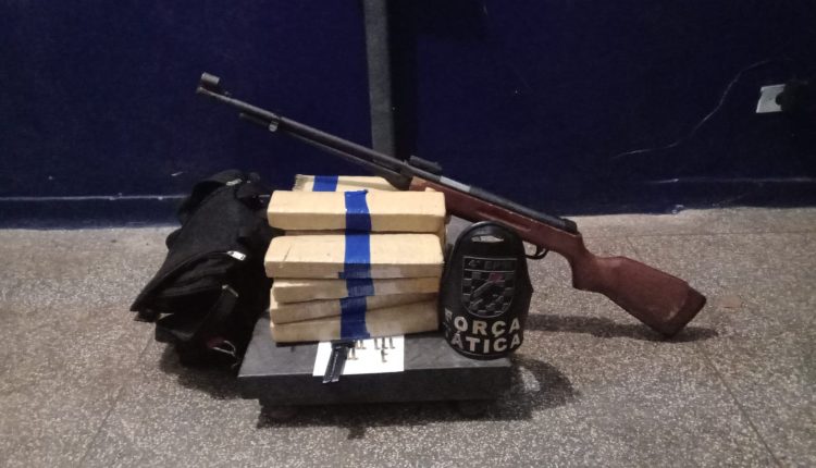 No local dos fatos, uma horta comunitária, os agentes se depararam com o autor segurando a arma de fogo e imediatamente foi dado voz de parada. Durante a abordagem foi avistado na porta da casa uma sacola com diversos tabletes de maconha, que totalizaram 11 quilos.