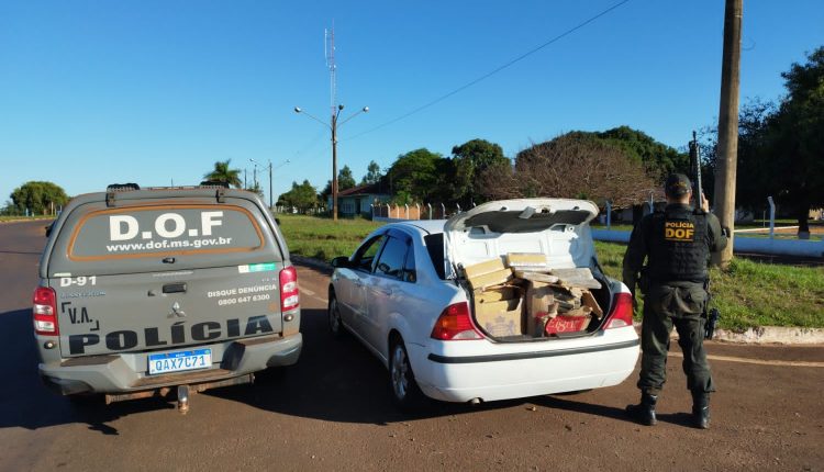 Um homem de 29 anos foi preso pelo Departamento de Operações de Fronteira (DOF), transportando mais de 200 quilos de drogas em caixas de cigarros num carro Ford Focus, na MS-386, em Ponta Porã.