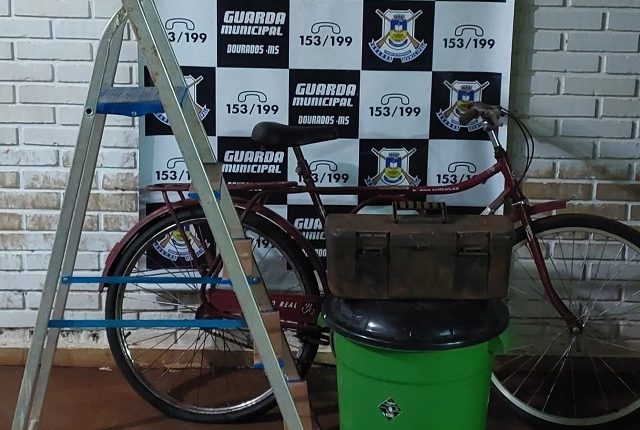 Durante os procedimentos, os GMs foram informados do possível paradeiro dos objetos furtados e foram até o local, onde encontraram o homem com uma escada, uma bicicleta vermelha, um balde e uma caixa de ferramentas – todos os materiais furtados da casa.