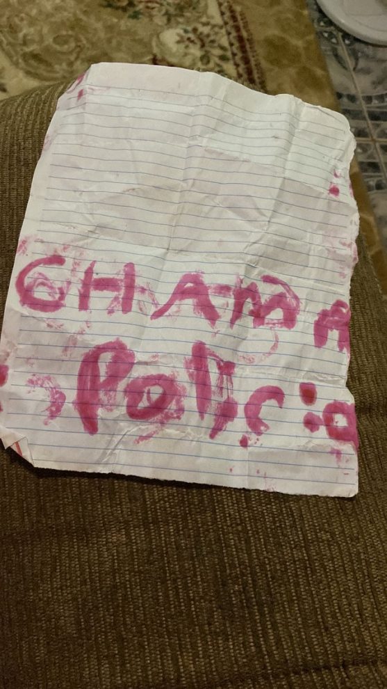 A mulher disse aos militares que se separou do autor há algum tempo, por causa de uma agressão, seguida de enforcamento e, desde então, vem sofrendo ameaças de morte por parte dele. Inclusive, chegou a mandar um pedaço de papel com pedido de socorro para sua vizinha, afirmando possuir medidas protetivas de urgência.