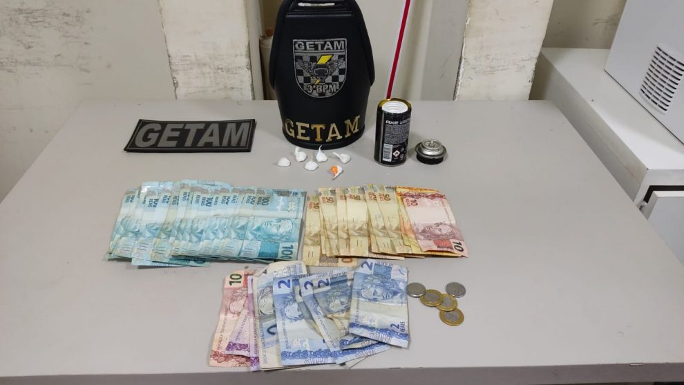 Já desconfiados, a guarnição seguiu Vando que só foi alcançado na rua Monte Alegre. Em revista pessoal, foram encontrados com o homem a quantia de R$ 2,5 mil em dinheiro, além de um vidro de desodorante com seis porções de pasta base de cocaína que totalizaram cinco gramas.