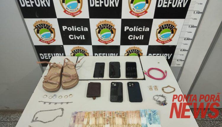 Além da caminhonete, foram subtraídos três aparelhos celulares e algumas joias das vítimas.