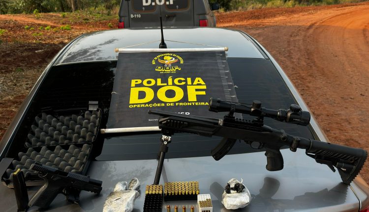 Policiais militares do DOF (Departamento de Operações de Fronteira) prenderam um homem de 25 anos com um rifle semiautomático calibre 22, uma pistola calibre nove milímetros, 200 gramas de cocaína além de 111 munições, na MS-160, zona rural de Tacuru.