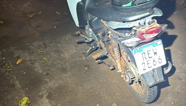 O veículo, que estava estacionado sobre a calçada, possuía registro de furto. A vítima relatou que a moto havia sido furtada mais cedo, às 16h, enquanto estava estacionada em frente a uma obra no Bairro Cidade Jardim, durante uma chuva. A motocicleta apresentava sinais de barro, assim como as vestimentas de Gabriel, indicando sua ligação com o crime.