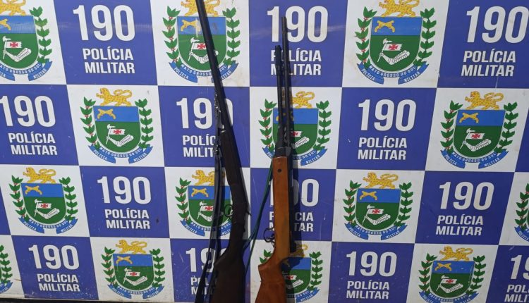 Durante as buscas, com autorização da vítima, os policiais localizaram as duas armas de fogo — uma calibre .20 e outra calibre .22 — ambas sem numeração aparente e sem munição. Posteriormente, a mulher informou que as munições estavam guardadas em outro cômodo da casa.
