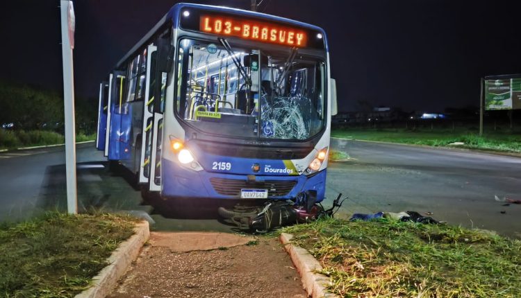 Um motociclista, ainda não identificado, morreu na noite deste domingo (18/8), após bater contra um ônibus que levava funcionários de uma empresa alimentícios, na Avenida Marcelino Pires, em Dourados.