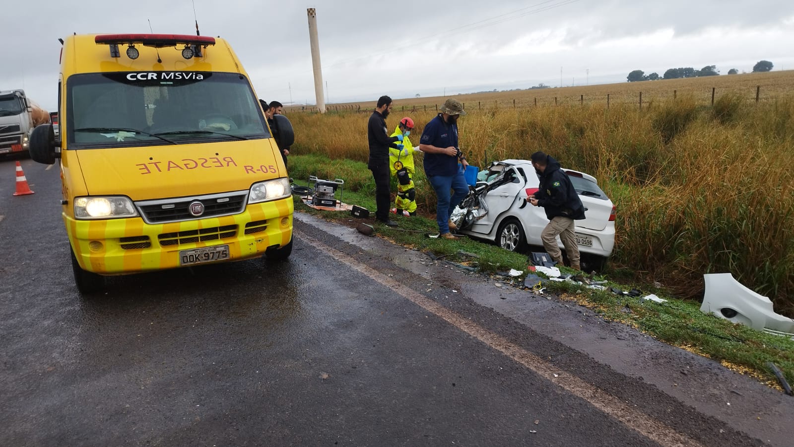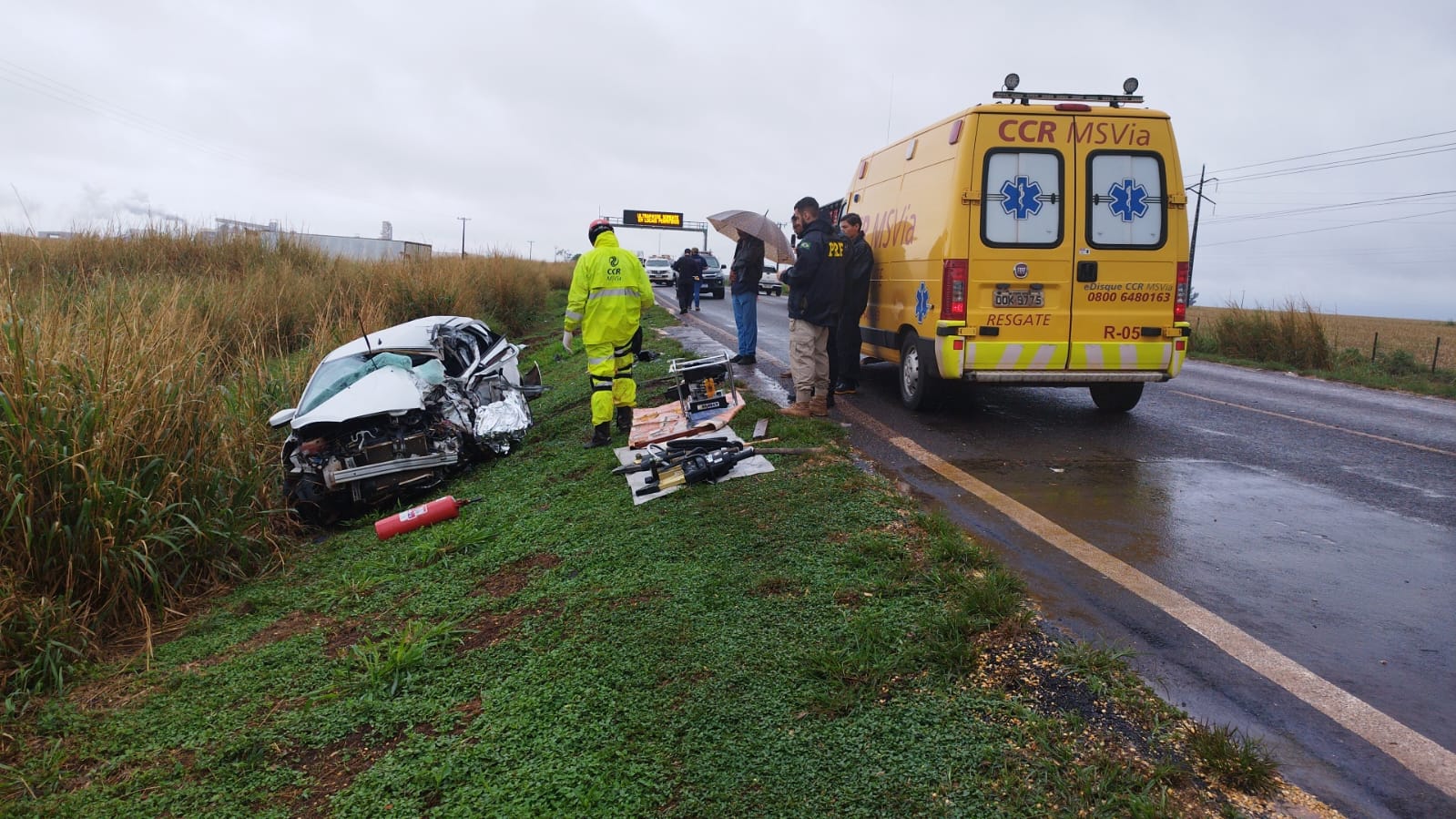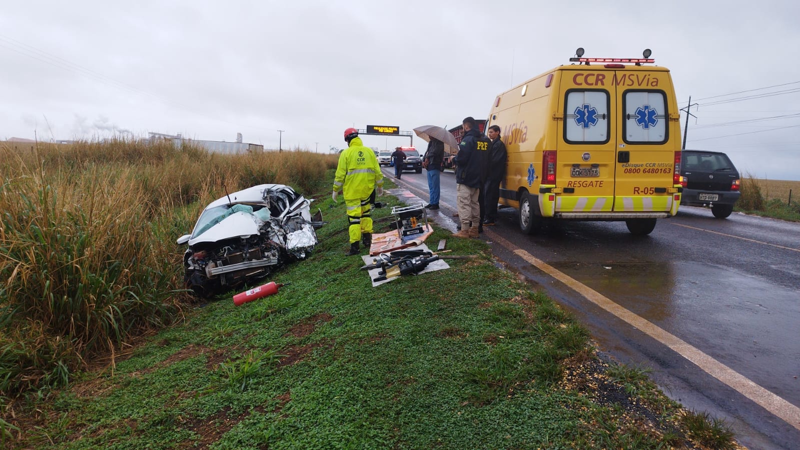 Maria da Conceição Araújo ficou presa nas ferragens e morreu na hora. Uma equipe da CCR MS Via realizou os primeiros atendimentos no local. A PRF (Polícia Rodoviária Federal) também este no local para o controle do trânsito que chegou a registrar dez quilômetros de congestionamento e operou no modelo ‘pare e siga’.