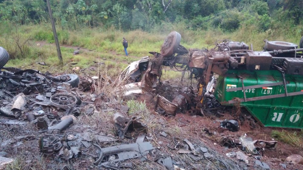A carreta dirigida por Carlos bateu de frente com um caminhão de transporte de sucatas que caiu no barranco ás margens da rodovia. O impacto foi tão forte que as duas cabines fiaram destruídas e os corpos dos motoristas mutilados.