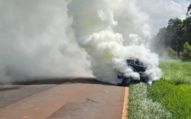 Incêndio destrói carro próximo ao trevo de Antônio João na MS-164