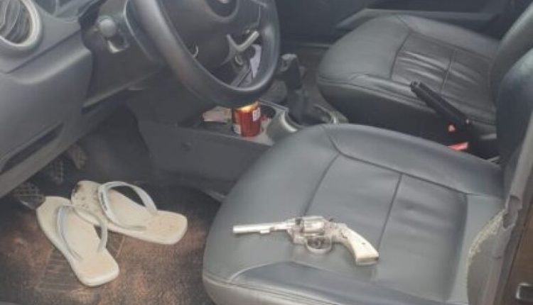 Os policiais localizaram debaixo do tapete do veículo, um revólver inox, de calibre 32, com a numeração suprimida, municiado, tendo um cartucho deflagrado e outro intacto. Durante entrevista, o responsável pela arma informou ter sido ameaçado de morte por um desconhecido e disse que teria ido atrás do desafeto para cobrar satisfação, tendo trocado socos e efetuado disparo para o alto para intimidá-lo.