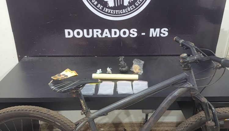 Miguel Messias Botelho, de 19 anos, foi preso por policiais civis da 1ª Delegacia de Dourados, acusado de recpetação de bicicleta furtada, avaliada em R$ 1 mil, e tráfico de drogas, nessa quinta-feira (6/3), na Vila Cachoeirinha, em Dourados.