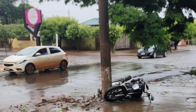 Motociclista identificado como Gabriel Bannwart da Silva, de 18 anos, ficou gravemente ferido após bater a moto que pilotava, uma CG 160 Fan, num poste de energia, na rua Monte Alegre, no jardim Guanabara, em Dourados, na manhã desta sexta-feira (24).