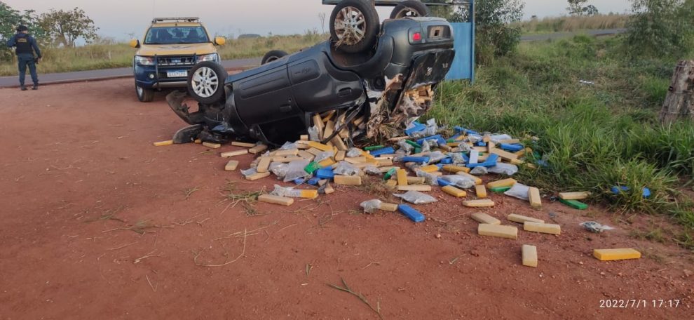 Ele estava com um Fiat/Uno, placa de Chapadão do Sul e durante a fuga acabou capotando o veículo onde foram apreendidos 501 quilos de maconha e 44 quilos de skank. Mesmo com alguns ferimentos o rapaz ainda tentou correr, mas foi alcançado e preso.