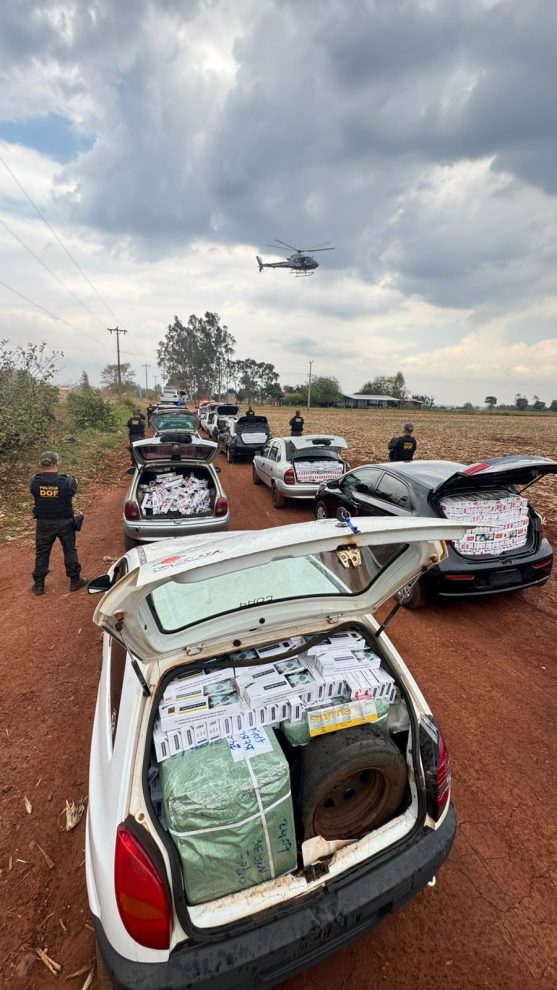 O comboio, composto por 17 veículos, foi interceptado em um entreposto de contrabando em uma chácara no Assentamento Itamarati II.