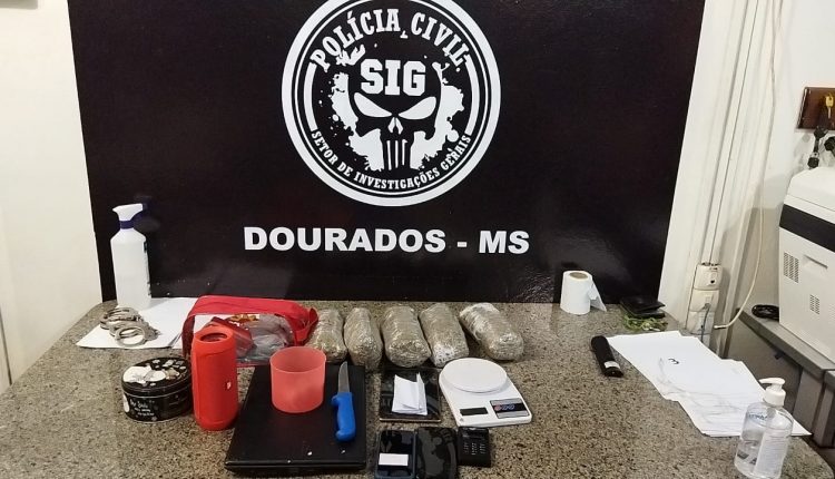 O primeiro foi preso no trabalho, e na casa dele, que fica no bairro Vival dos Ipês, a equipe localizou 1,5 quilo de skunk, balança de precisão, tablete, caixa de som e vários celulares.