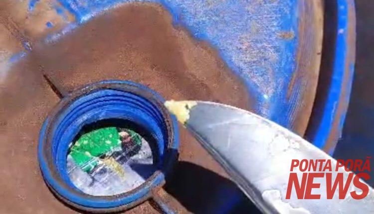 Uma equipe da Polícia Rodoviária Federal (PRF) apreendeu, neste domingo (24), cerca de 457 quilos de cocaína escondidos em tambores plásticos de combustíveis em um caminhão Mercedes Benz com placas de São Paulo, na rodovia MS 229, em Chapadão do Sul.