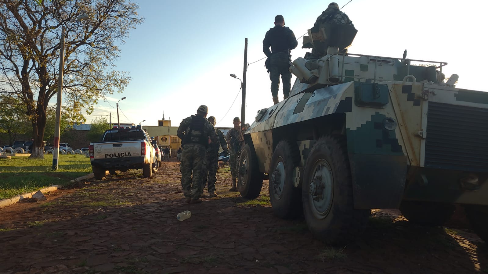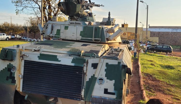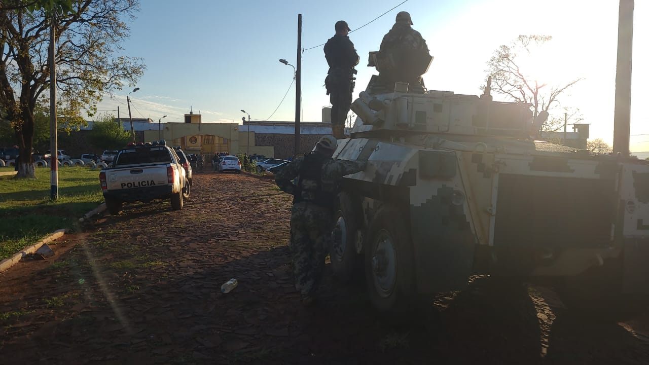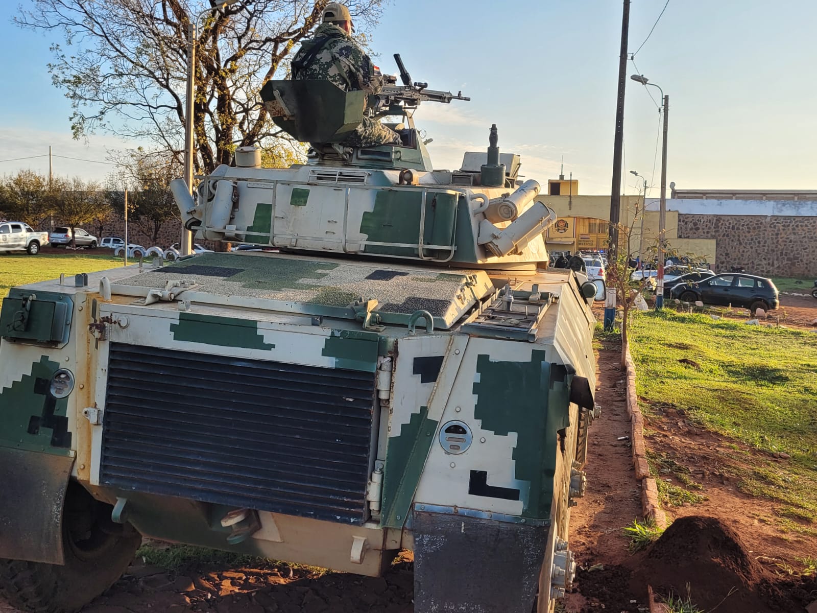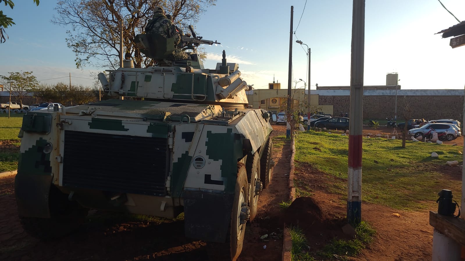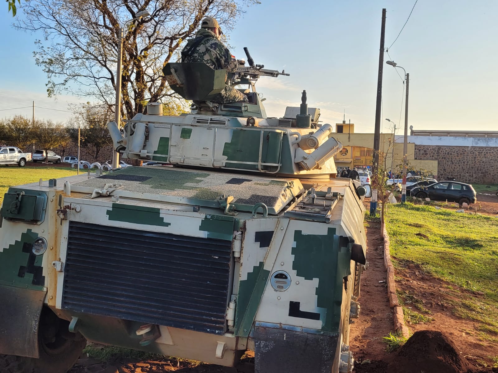 Ainda em frente ao presídio, onde era ocupado predominantemente por membros do Primeiro Comando da Capital, mas que há cerca de 30 dias, passou a receber criminosos da facção paraguaia, foi montado um forte esquema de segurança, inclusive com tanque de guerra.