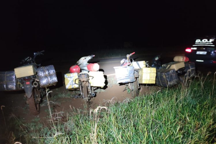 Policiais do Departamento de Operações de Fronteira (DOF) apreenderam na madrugada desta quinta-feira (16), nove motocicletas carregadas com quase uma tonelada de maconha na MS-386, em Ponta Porã.