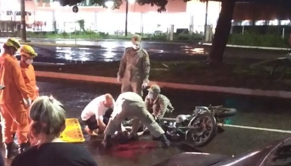 Um carro de aplicativo que trafegava logo atrás parou, mas duas motos que faziam o mesmo sentido aparentemente não conseguiram parar e uma delas passou sobre a cabeça da vítima que estava caída cerca de 11 metros do ponto de impacto. Os dois motociclistas caíram, mas levantaram em seguida e fugiram.