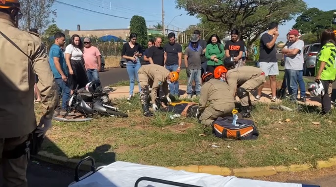 Motociclista identificada como Cláudia Carolina Castro Ramos, de 27 anos, foi levada para o HV (Hospital da Vida) no início da tarde desta sexta-feira (14/6), após colidir contra caminhonete Toyota Hilux, em Dourados.