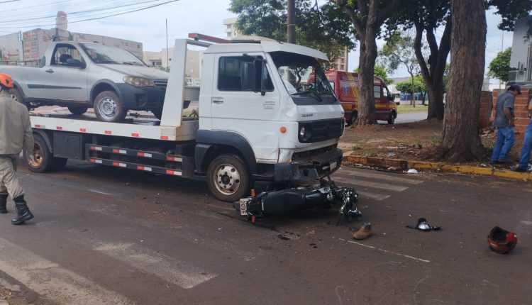 Paulo Henrique de Moraes, de 45 anos, que pilotava uma motocicleta Titan, preta, está internado em estado gravíssimo no HV (Hospital da Vida), após ser atropelado por um caminhão tipo guincho, nesta segunda-feira (8/4), na Avenida Weimar Gonçalves Torres com a Rua Dos Caiuás, em Dourados.