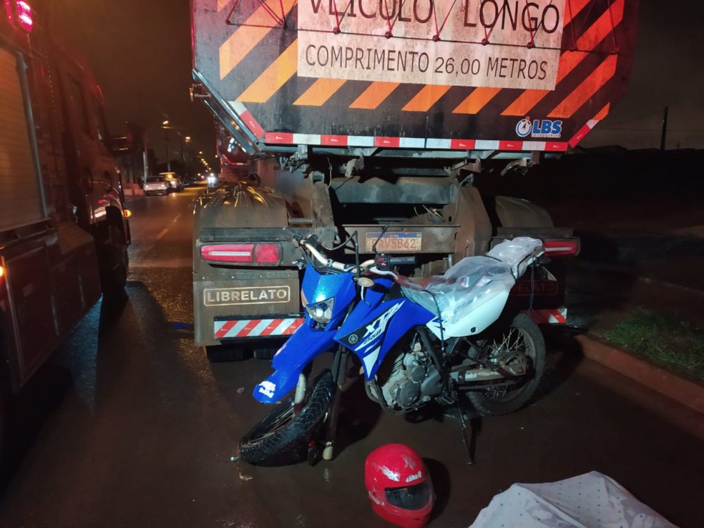 Um motociclista morreu no começo da noite desta sexta-feira (26) ao bater a moto que conduzia em uma carreta que estava estacionada. O acidente aconteceu na rua Vitório Fedrizzi, no bairro Vila Toscana II Plano, periferia de Dourados.