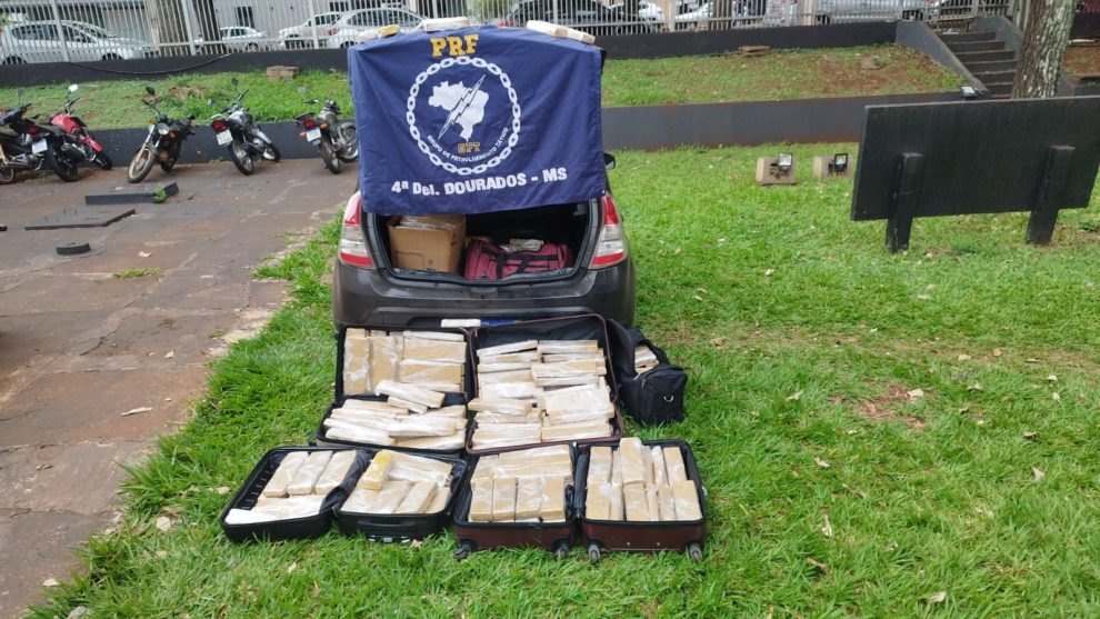 No Renault os PRFs encontraram quatro malas e mochilas e nelas tabletes de maconha que totalizaram 242 quilos de maconha. O homem disse aos agentes que foi contratado por uma pessoa para buscar a droga em Ponta Porã e levar até o Rio de Janeiro, para isso, ele ganharia R$ 15 mil.