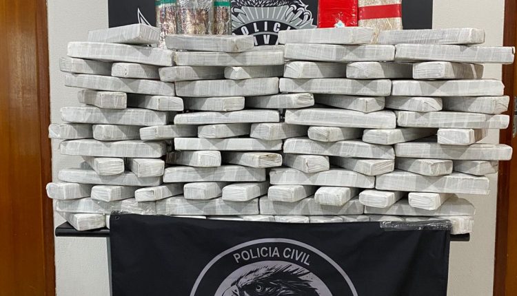 Sendo assim, os policiais realizaram busca veicular, localizando diversas caixas de papelão contendo o total de 101 tabletes de maconha, somando 100,8 quilos e, 12 tabletes de cocaína, totalizando 12,6 quilos.