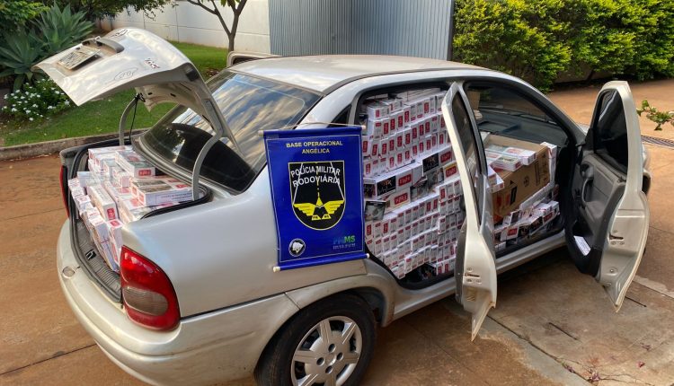 A PMR (Polícia Militar Rodoviária) apreendeu na madrugada deste domingo (25/1), no entroncamento da MS-141 com a BR-267, em Angélica, veículo GM Corsa Classic carregado com 1,4 mil pacotes de cigarros contrabandeados do Paraguai e que saíram de Dourados.