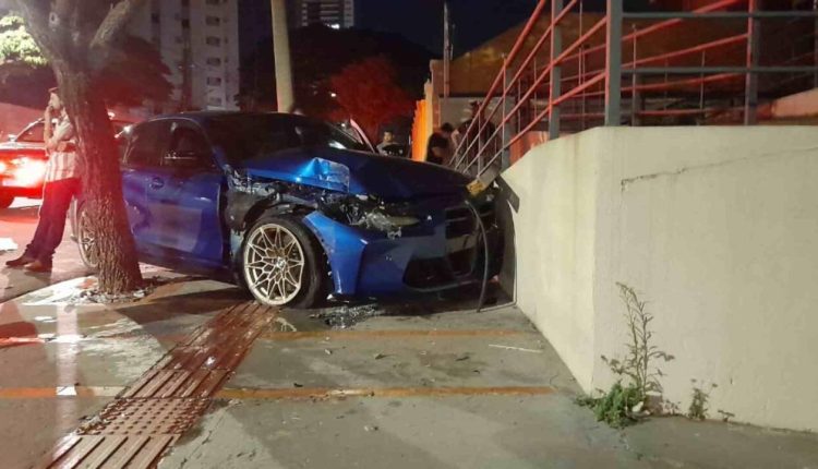 O motorista de uma BMW bateu no muro de um escritório ao fazer ‘cavalinho de pau’ por volta das 23h de quarta-feira (19/7), na Rua Manoel Inácio de Souza com a Bahia, em Campo Grande.
