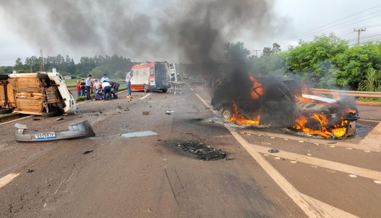 Grave acidente registrado na manhã desta sexta-feira (30/1), na BR-163, saída de Dourados para Caarapó, deixou dois motoristas feridos e um carro completamente destruído pelas chamas.