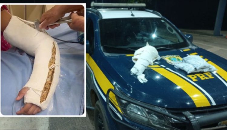 A equipe da PRF também percebeu que o gesso era de tamanho desproporcional e poderia estar sendo usado como “mocó” – esconderijo – de drogas. A mulher foi levada ao Hospital Regional de Cáceres, onde com acompanhamento médico o gesso foi aberto, revelando 3,6 quilos de pasta base de cocaína.