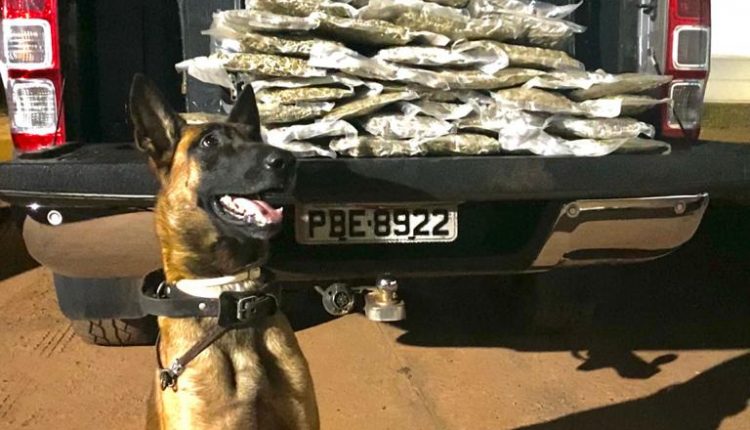 No começo da noite deste sábado (20) Policiais Militares do Canil do Batalhão de Choque – BPMChoque – apreenderam quase dez quilos de Skank, também conhecida como a super maconha. A droga estava em poder de uma mulher que viajava com destino ao interior de Goiás.