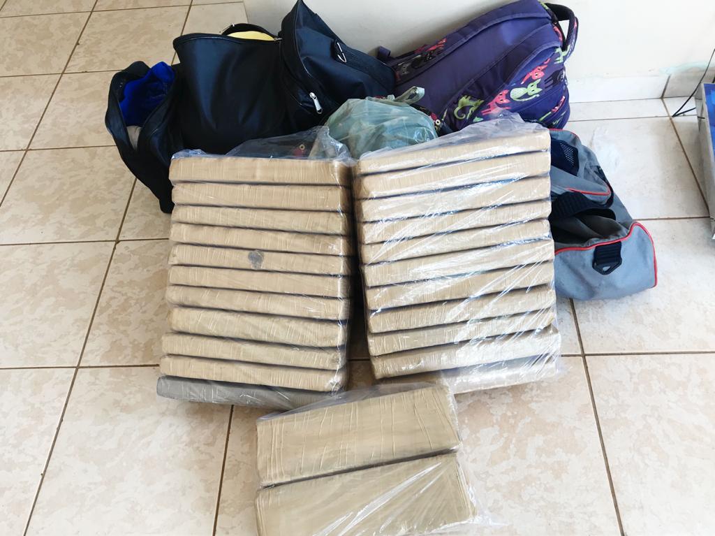 A equipe PM ao verificar a documentação e posterior revista nas mochilas, localizou 29 tabletes de maconha que totalizaram 27 quilos.