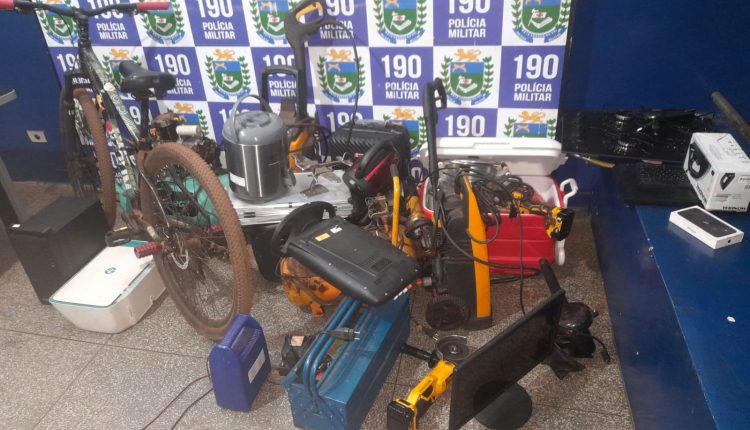 Entre os materiais recuperados estão furadeiras e lixadeiras das marcas Dewalt e Makita, fogão cooktop Atlas, eletrodomésticos Britânia e Mondial, bicicleta Colli aro 29 preta, impressora HP branca, CPU e monitor Mtec pretos, caixa de som EcoPower, mala KMFGA preta, garrafas térmicas, lavadoras de pressão Wap amarelas, caixa térmica vermelha com jogo de panelas completo, relógio Condor com estojo original, além de ferramentas sofisticadas, como serra circular Shongtools e compressores Energy. Também foram apreendidos um iPhone 8 branco, um notebook Sony AIO preto e até um objeto decorativo em formato de avião.