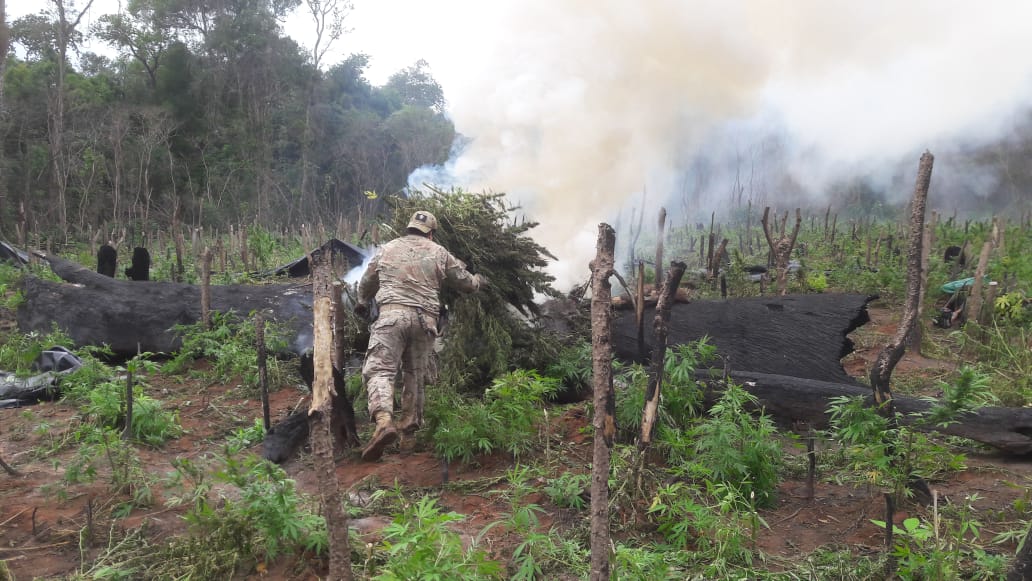 O SENAD, o Ministério Público, a Força Aérea, o INFONA e a Comissão de Prevenção, que lutam contra o narcotráfico e os delitos, realizaram intervenções aéreas e terrestres que permitiram a identificação e destruição de pelo menos 155 Hectares de plantações de maconha e 49 campos que Narcoprodutores prepararam com toda a logística para o processamento de grandes volumes de maconha.